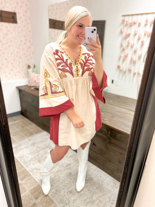 Autumn Embers Embroidered Dress