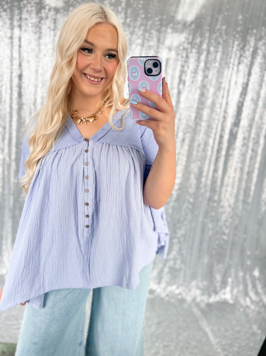Blue Button Babydoll Top