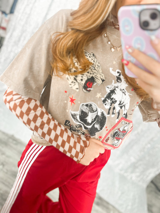 Tan Checker Mesh Top
