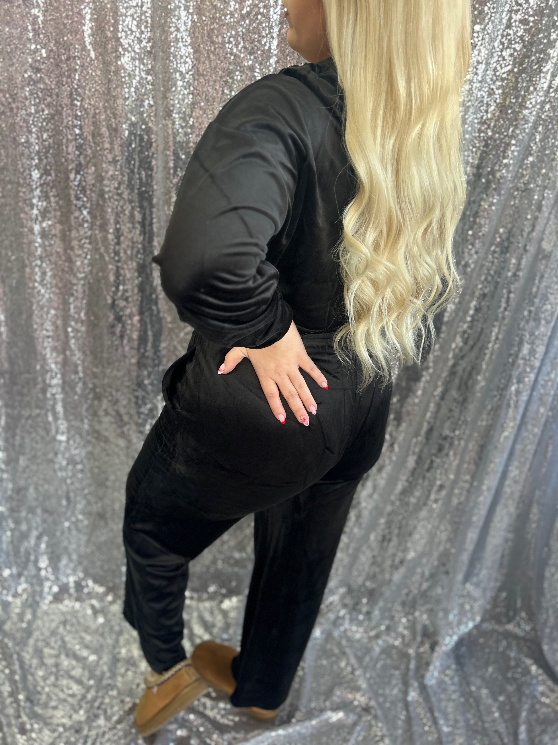 Experience comfort and style with our Black Noir Luxe Zip Set. Made from soft and stretchy fabric, this set is both cute and comfortable. Perfect for any occasion, this set will make you look and feel your best.