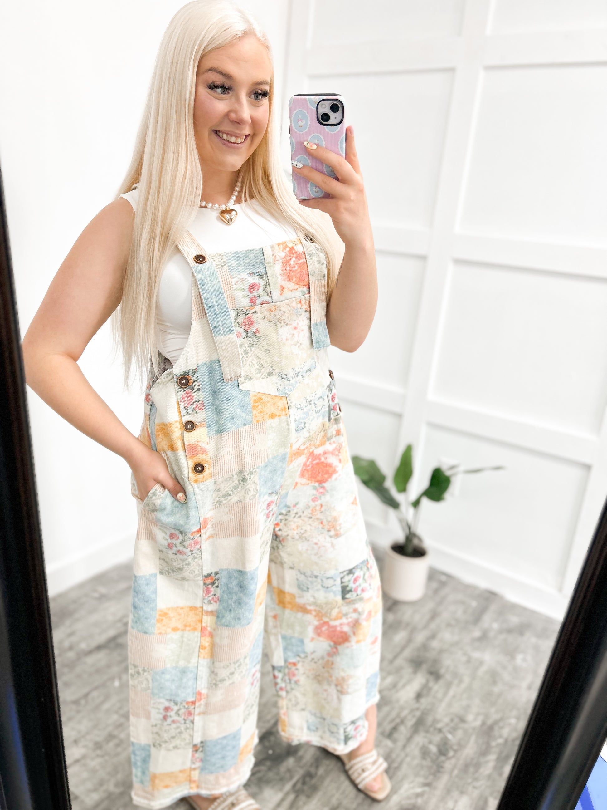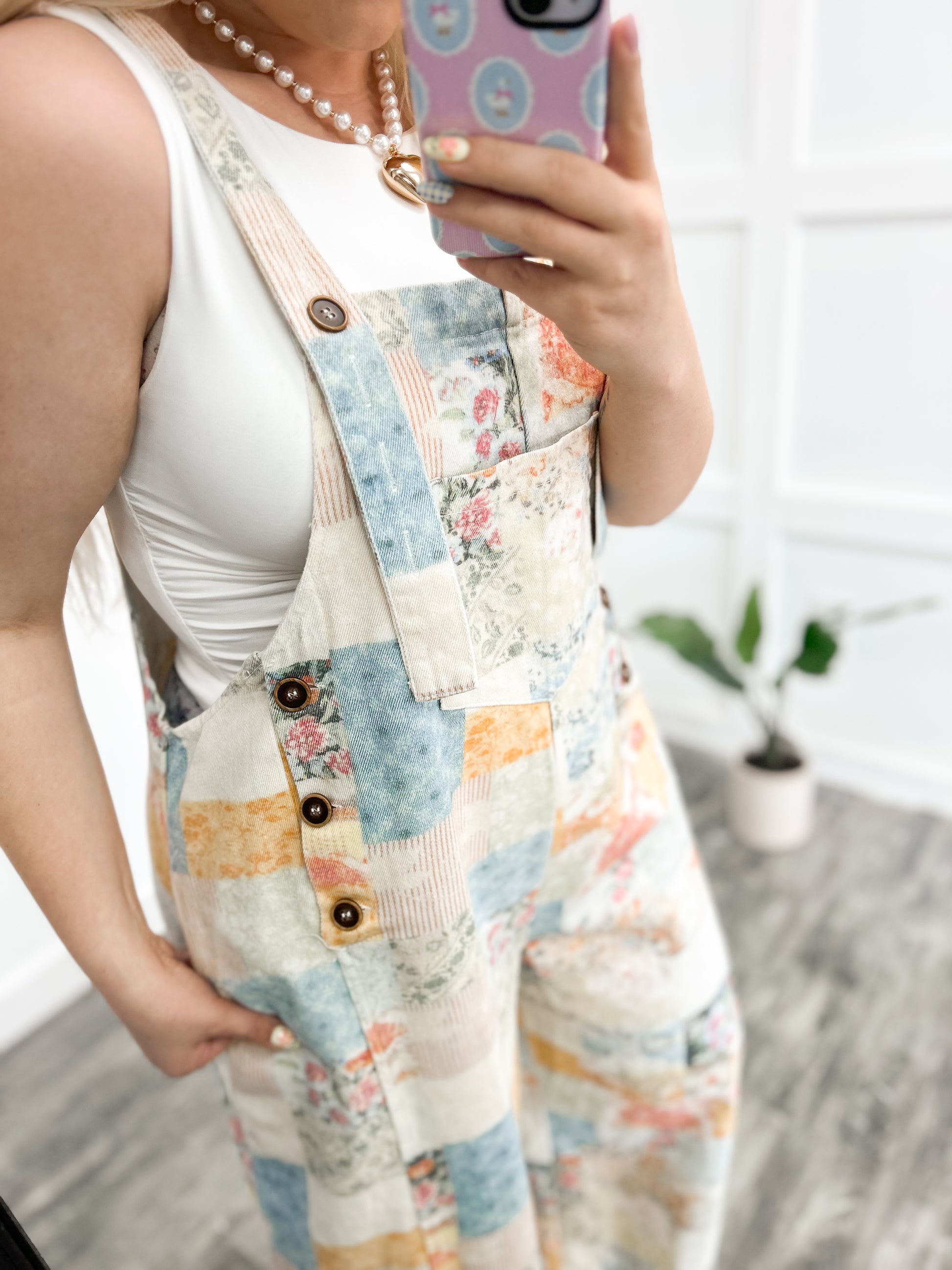 The CUTEST denim overalls! Has unique patchwork detailing throughout and a super relaxed oversized fit! The straps offer adjustable button lengths for taller heights. Also features pockets in the front and the back. These are a lifelong unique piece that you will want to keep around forever! Step out and shine today!