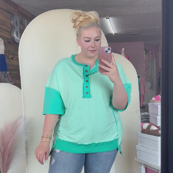 Kelly Green Split Hem Button Top