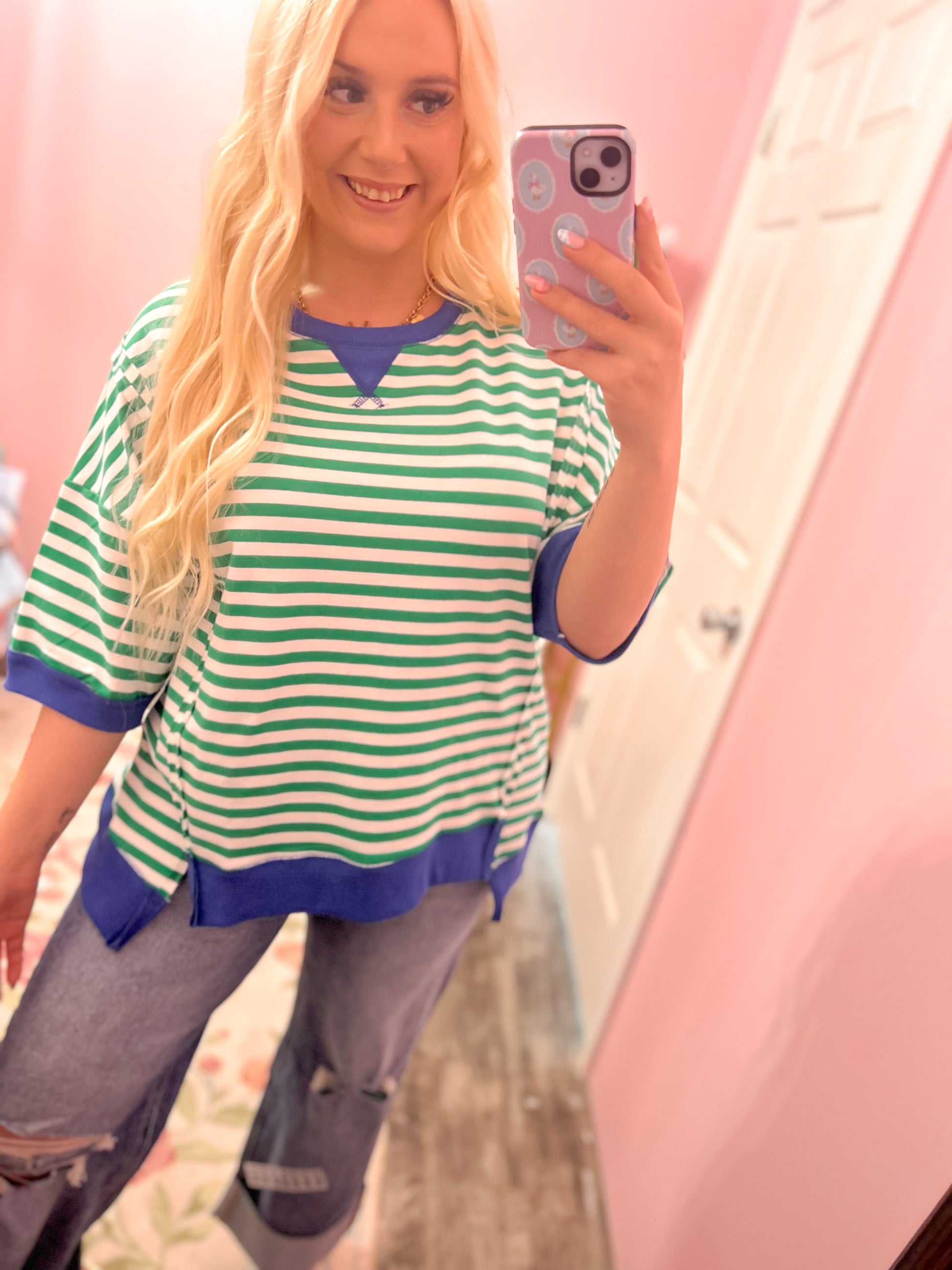 Experience the perfect blend of style and comfort with the Kelly & Royal Striped Colorblock top! Its super cute oversized fit not only flatters all body types but also offers unmatched coziness. Slip into this vibrant piece and embrace a burst of joy in your wardrobe!
