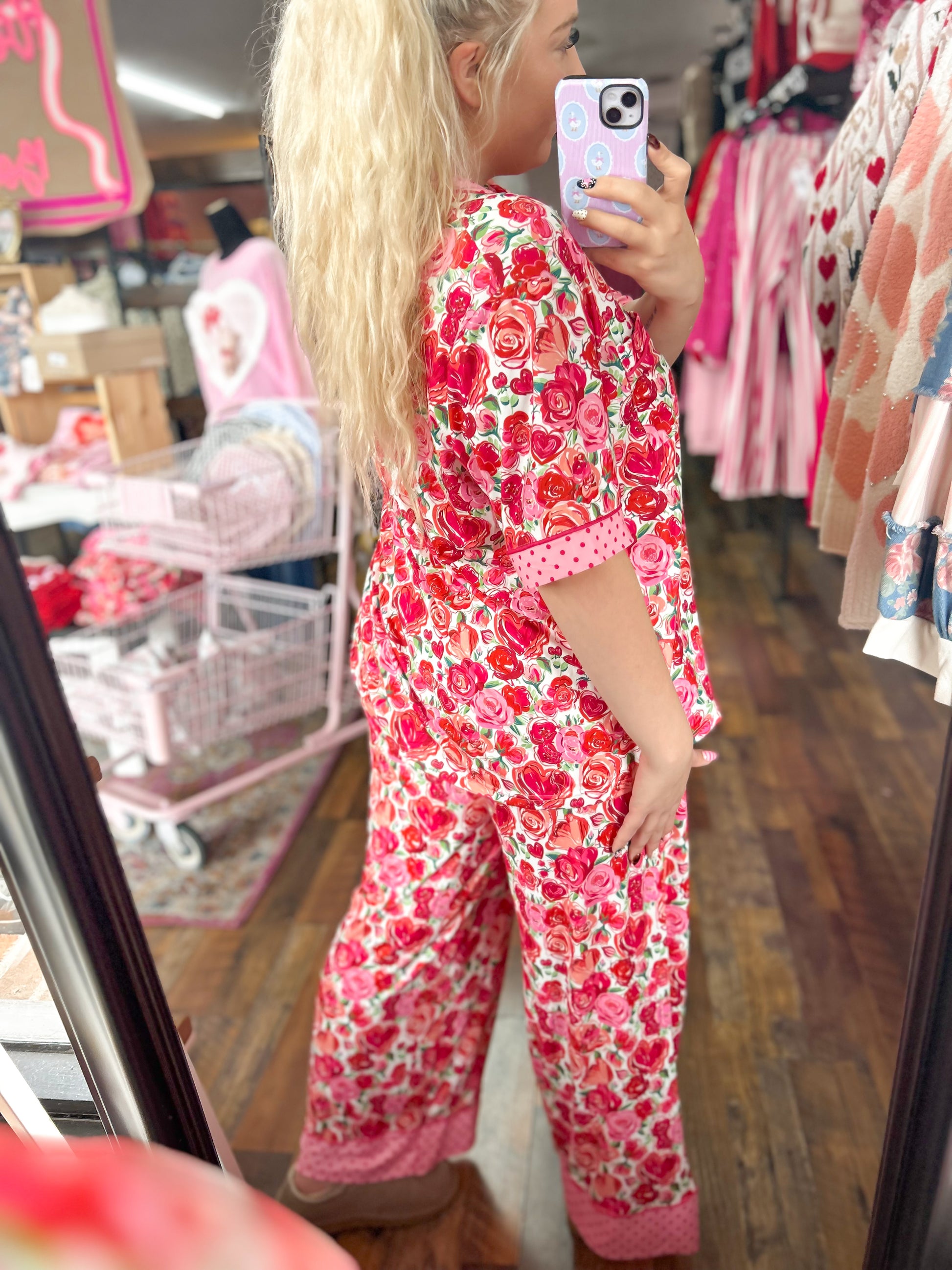 The softest luxurious feeling pjs you will ever put on your body! Light weight, non sticking material with tons of stretch! These fun oversized, and offer functional buttons and pockets.