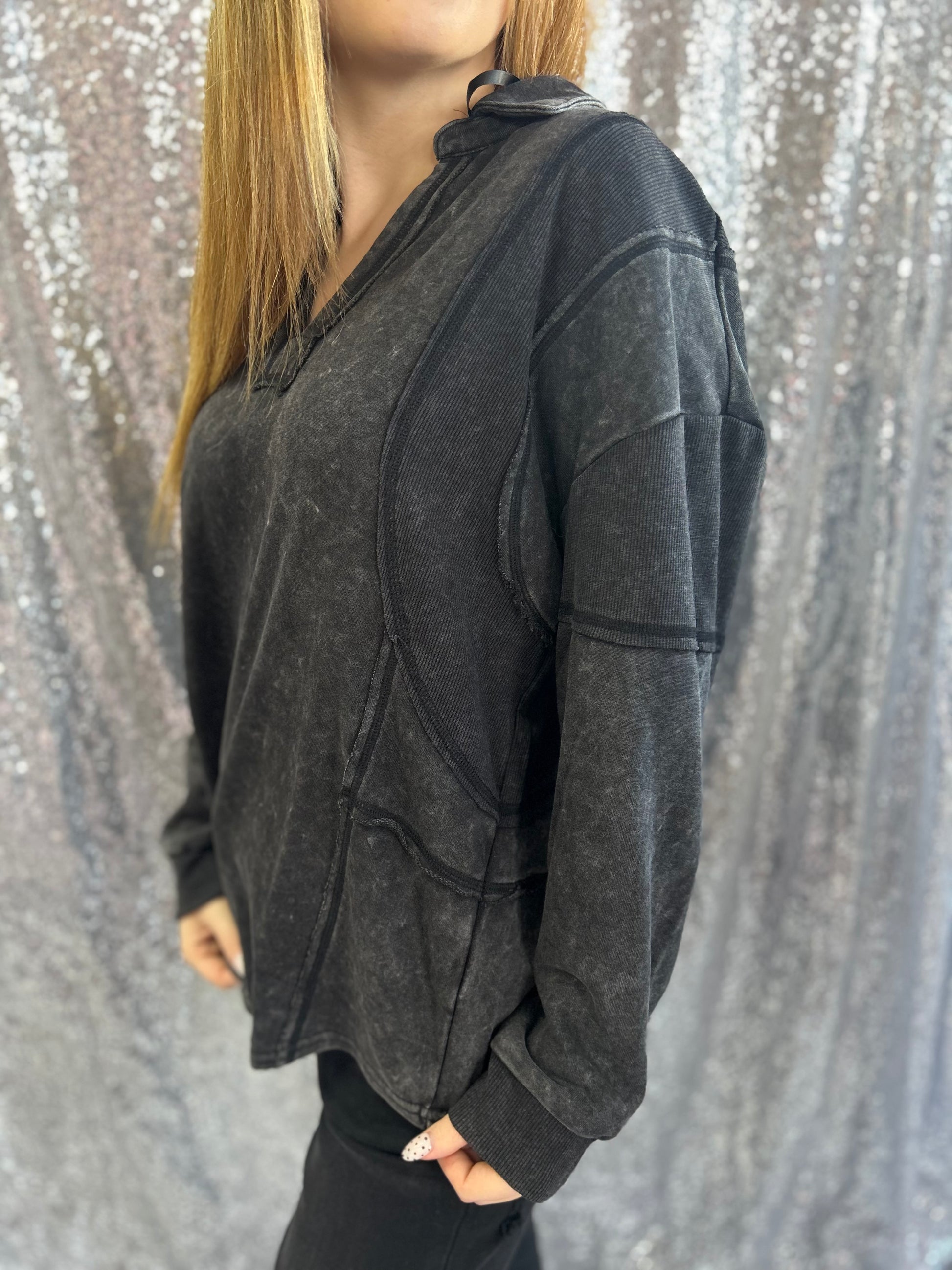 Embrace bold and edgy style with our Midnight Acid Wash Pullover. The black acid wash gives this oversized pullover a unique and eye-catching look. Perfect for making a statement while staying comfortable. Elevate your wardrobe with this must-have piece!