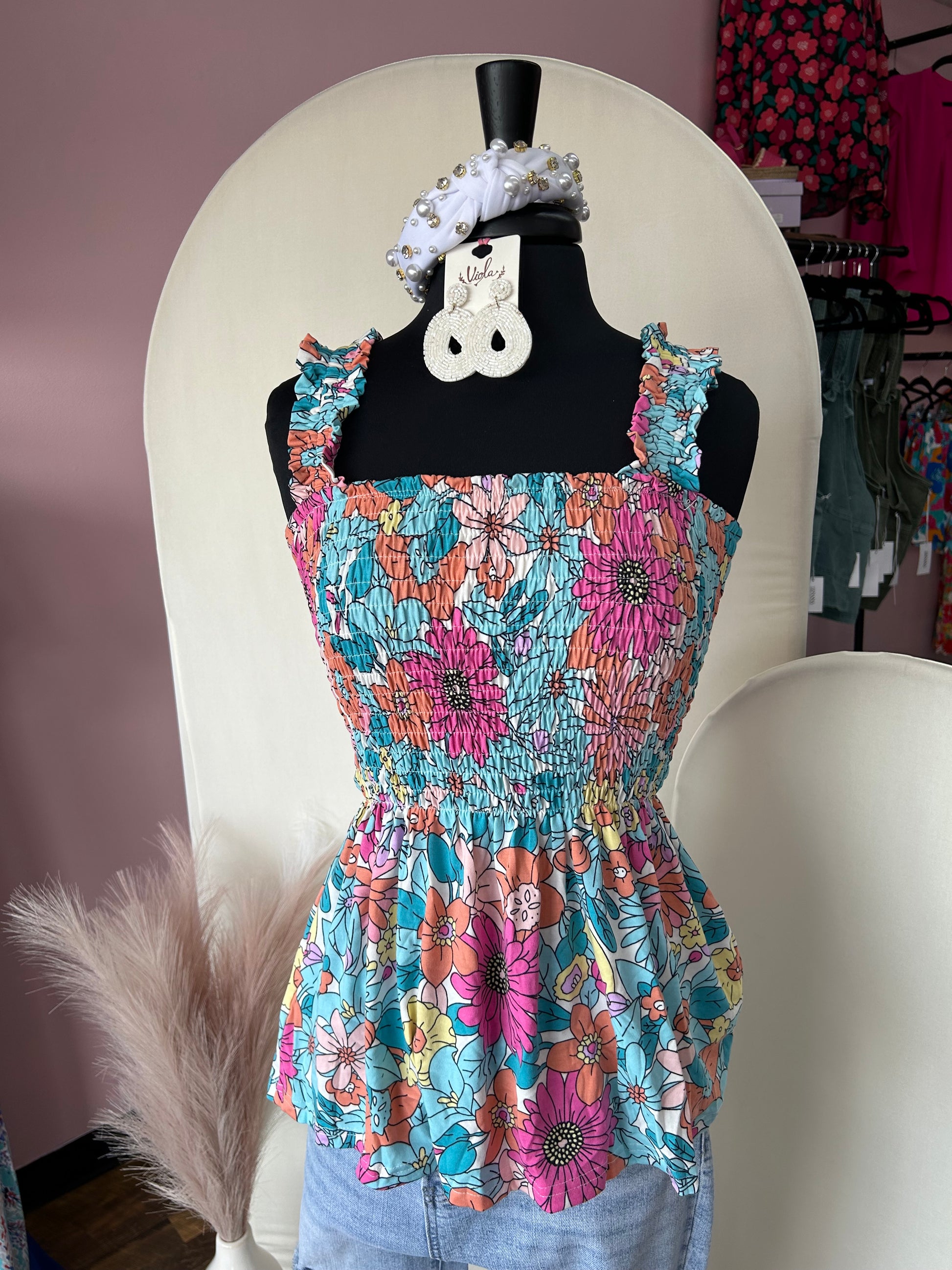 Retro Floral Smocked Tank