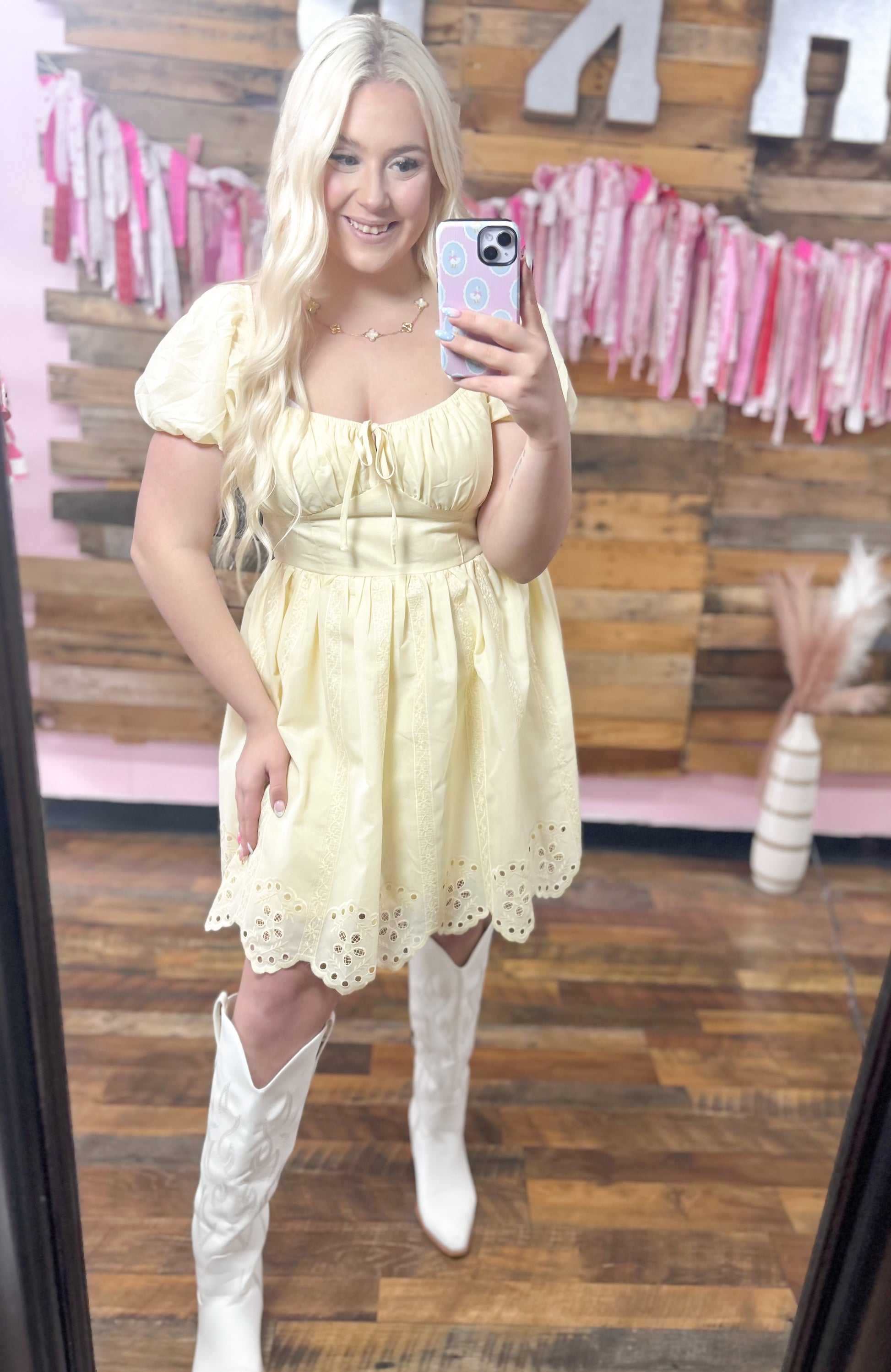 Embrace sunny days with the Walking on Sunshine Swing Dress! Its stunning eyelet lace detailing adds a touch of elegance, making you feel effortlessly beautiful. Get ready to twirl in style and radiate joy wherever you go. This dress is the perfect blend of comfort and charm!